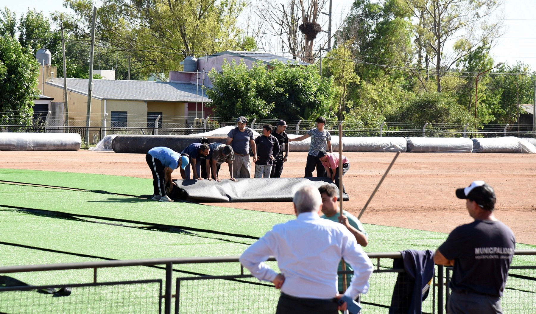 Sobre ese cimiento, personal de la empresa adjudicataria de los trabajos y empleados municipales procedieron -en las últimas horas- a colocar los 5.475 metros cuadrados de césped sintético, etapa que significa un paso fundamental para su uso.