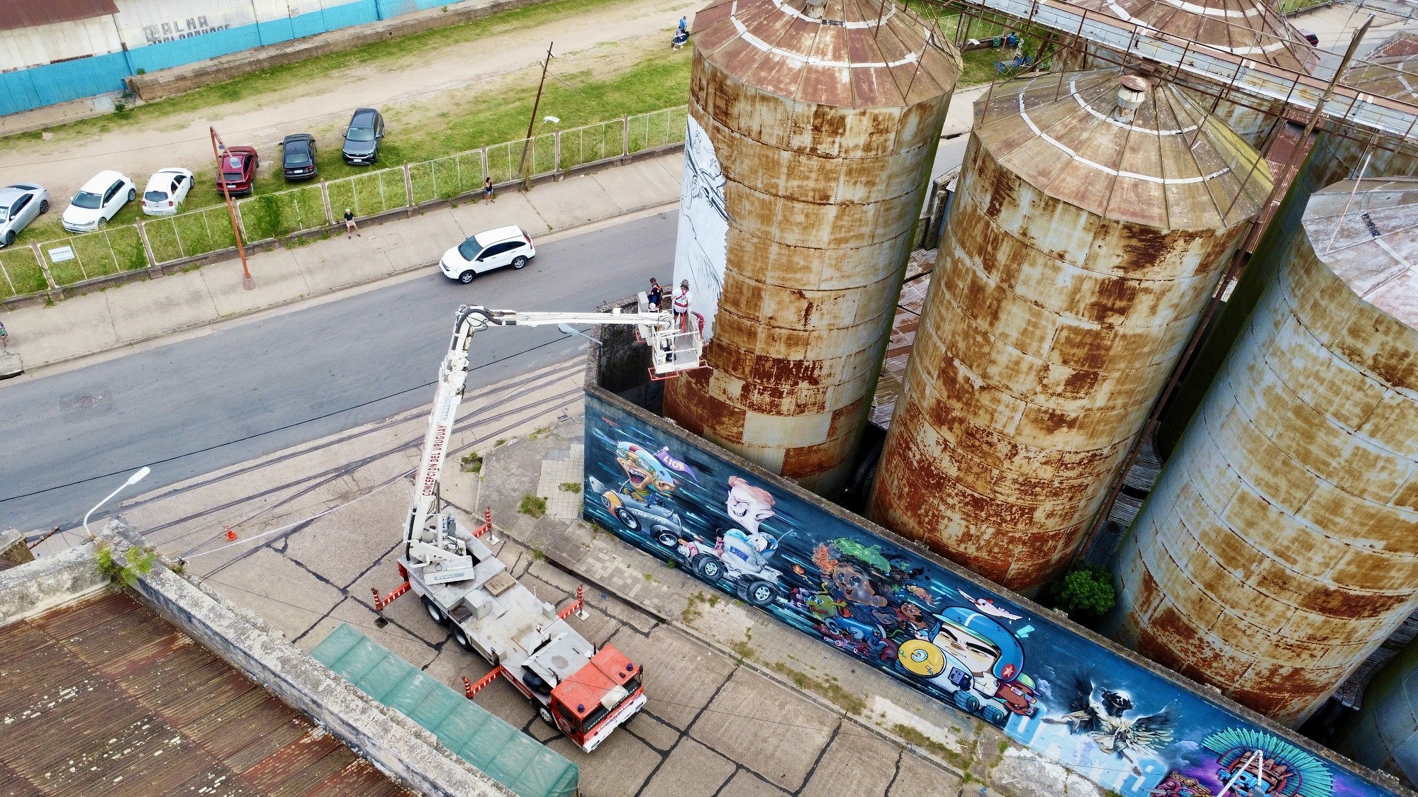 Desde el sábado y hasta el lunes, doce artistas de distintos puntos del país van dando forma a nuevas obras que transforman el paisaje. Cada trazo suma identidad, cada pared recuperada se vuelve un mensaje. Entre los momentos más esperados del encuentro se destaca el mural en altura que toma forma sobre los silos, a cargo de la reconocida artista uruguaya Verónica Gazzarata, Min8, quien vuelve a dejar su sello monumental en la ciudad tras el impacto que generó su obra del año pasado sobre calle Galarza.