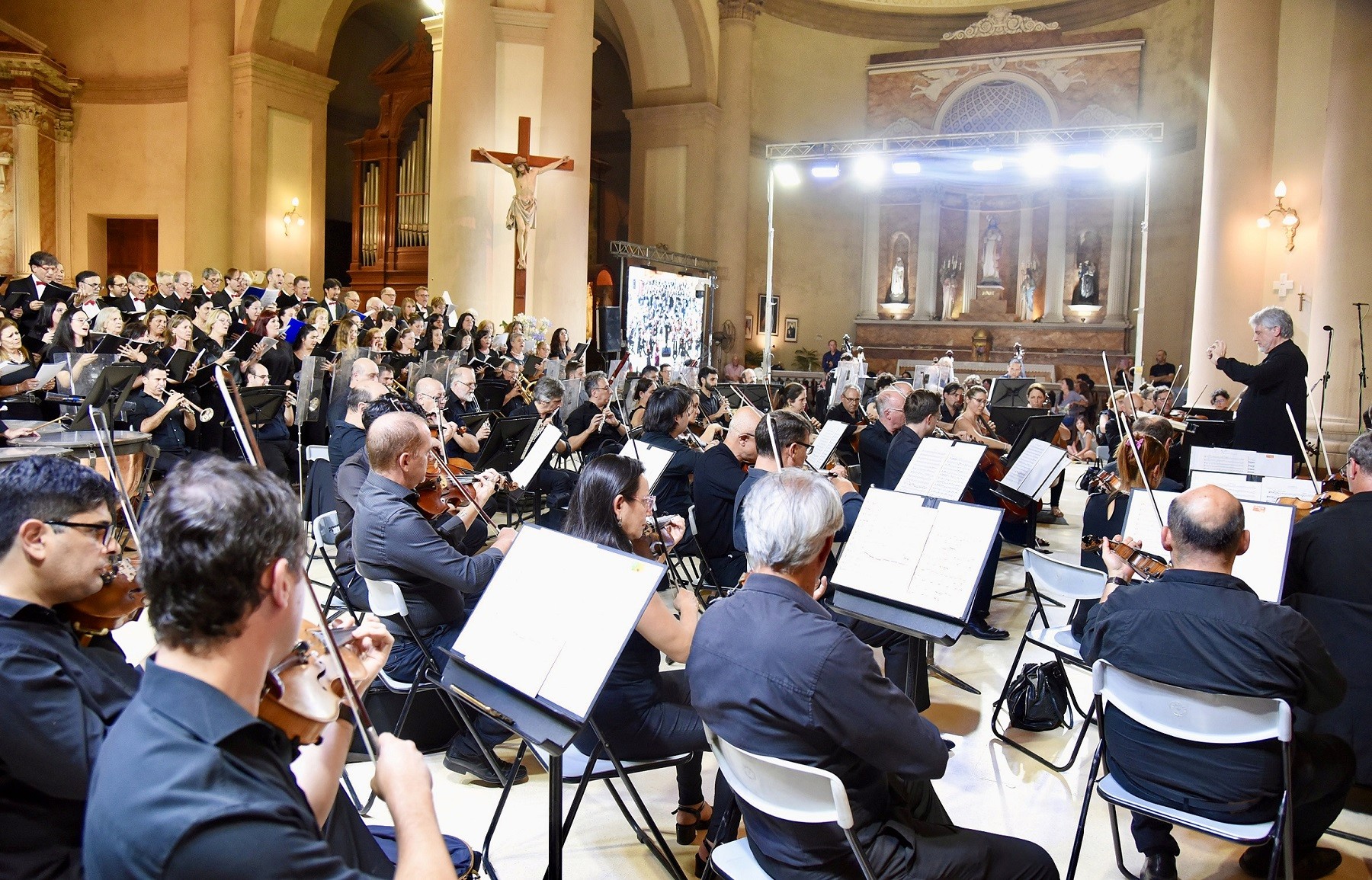 La Basílica Inmaculada Concepción fue escenario este sábado 13 de diciembre de un acontecimiento cultural de jerarquía: la presentación de la Orquesta Sinfónica de Entre Ríos para interpretar la Novena Sinfonía de Ludwig van Beethoven, una obra emblemática que cumple 200 años de historia. En un concierto gratuito, el templo mayor de Concepción del Uruguay se vio colmado de público que, pese a las altas temperaturas, acompañó y disfrutó de una velada musical de altísimo nivel.